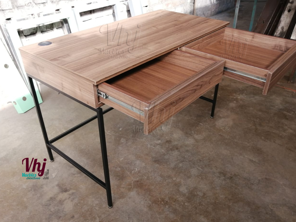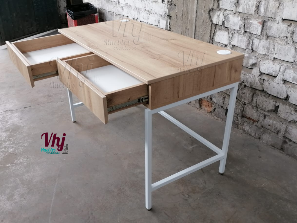 ESCRITORIO EN MELAMINA CON ESTRUCTURA METÁLICA